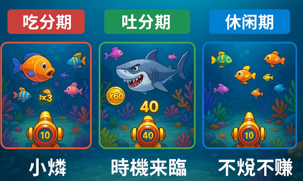 玩捕魚機最常聽到的一句話就是:「現在是吐分期,快打!」但到底什麼是吐分期?什麼又是吃分期?這些說法不是迷信,其實背後是有跡可循的。捕魚機的機台運作有其「週期性」邏輯,懂得看週期,就像懂得看股市的高低點,能讓你避開風險、把握機會。